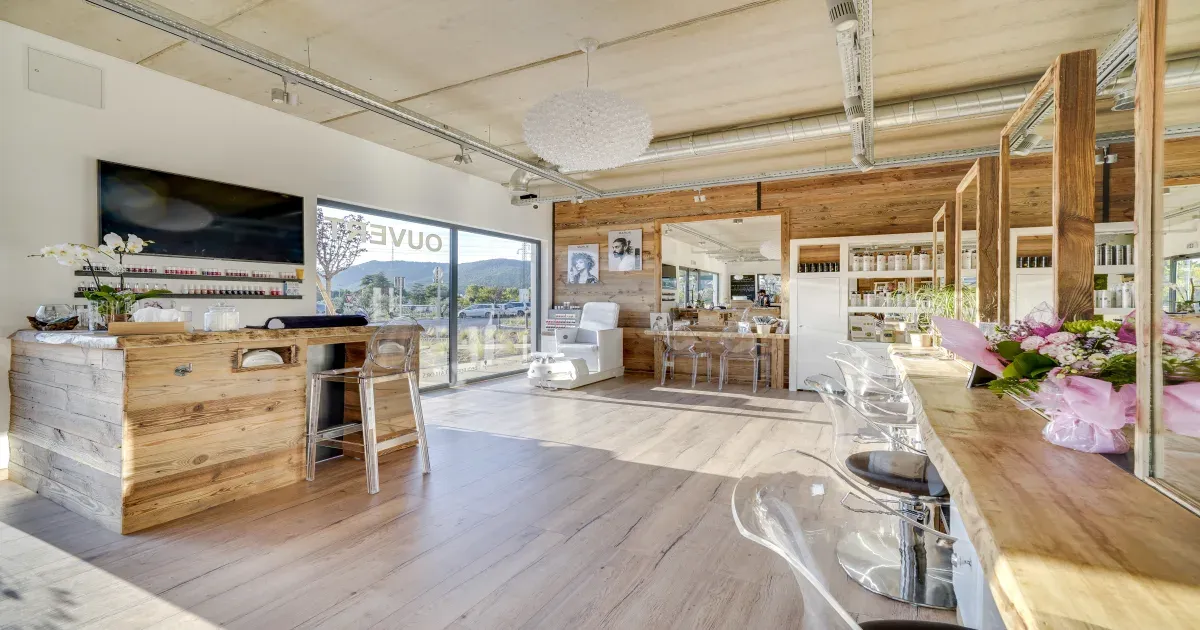 Particulièrement chaleureuse et cosy, avec sa jolie décoration en bois, la maison joue la carte de la convivialité élégante. D’inspiration à la fois zen et scandinave, elle vous invite à entrer dans un univers 100 % relaxant. Elle allie la coiffure , l’esthétique, et pour les messieurs, un espace barber shop . Le tout réuni dans un même endroit.